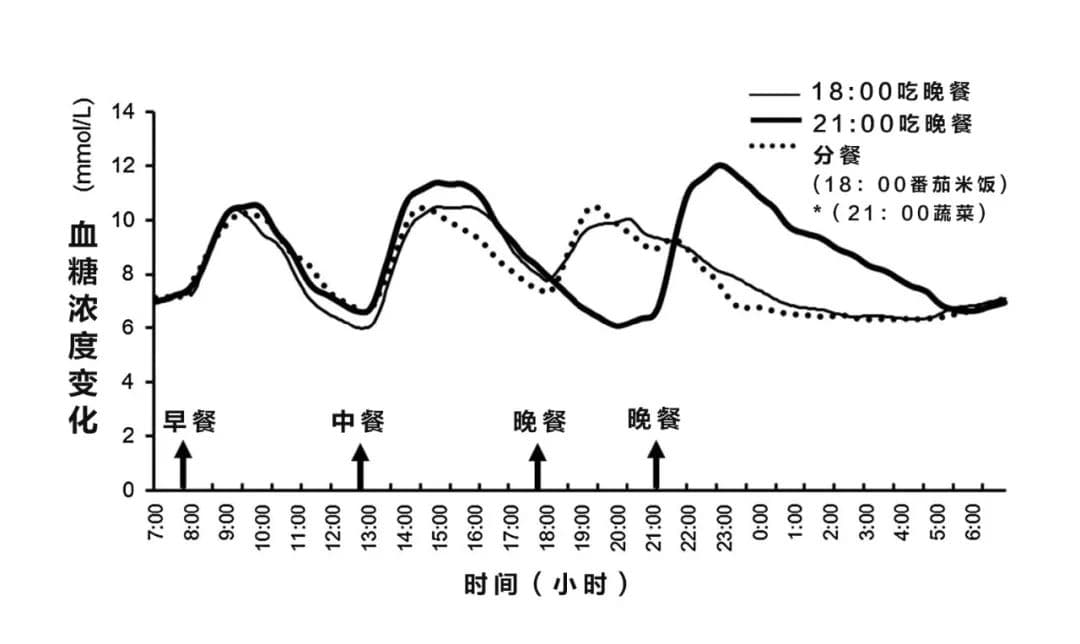 进食后,胰岛素敏感性降低,血糖和脂质的清除率降低,而在睡前吃大餐,食物的热效应降低,机体的整体代谢也下降。