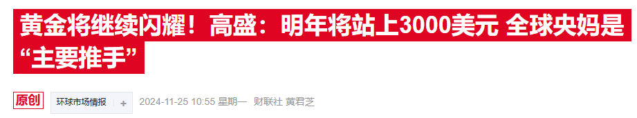 在媒体的调查中,最乐观的预测来自高盛集团,该行预计金价2025年底的价格将达到3000美元。