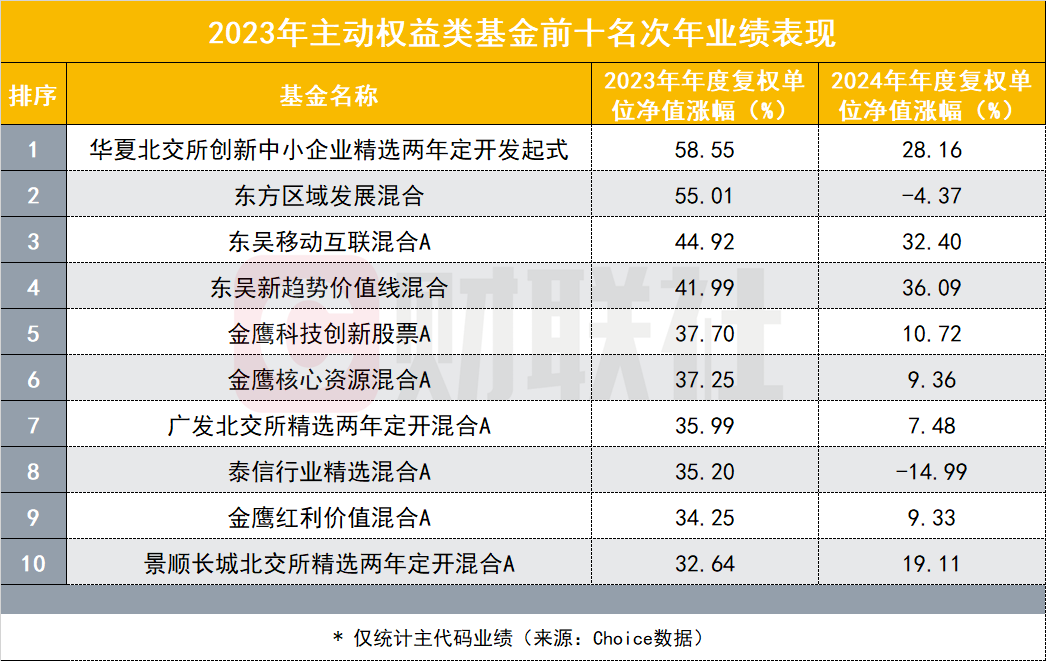 “2023年业绩前十”在24年表现如何?