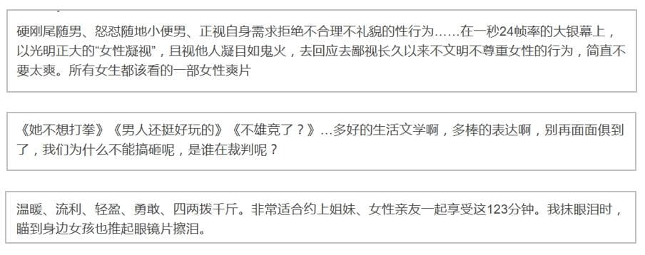 这类电影之所以能够吸引女性观众,不仅因为它们提供了娱乐体验,更因为它们通过喜剧语境赋予现实痛点以温情解读和情绪缓冲,创造了轻盈松弛的讨论空间,鼓励女性面对困境、突破限制。这种“用电影讲自己故事”的创作思路,证明女性题材仍有巨大的市场潜力有待挖掘。