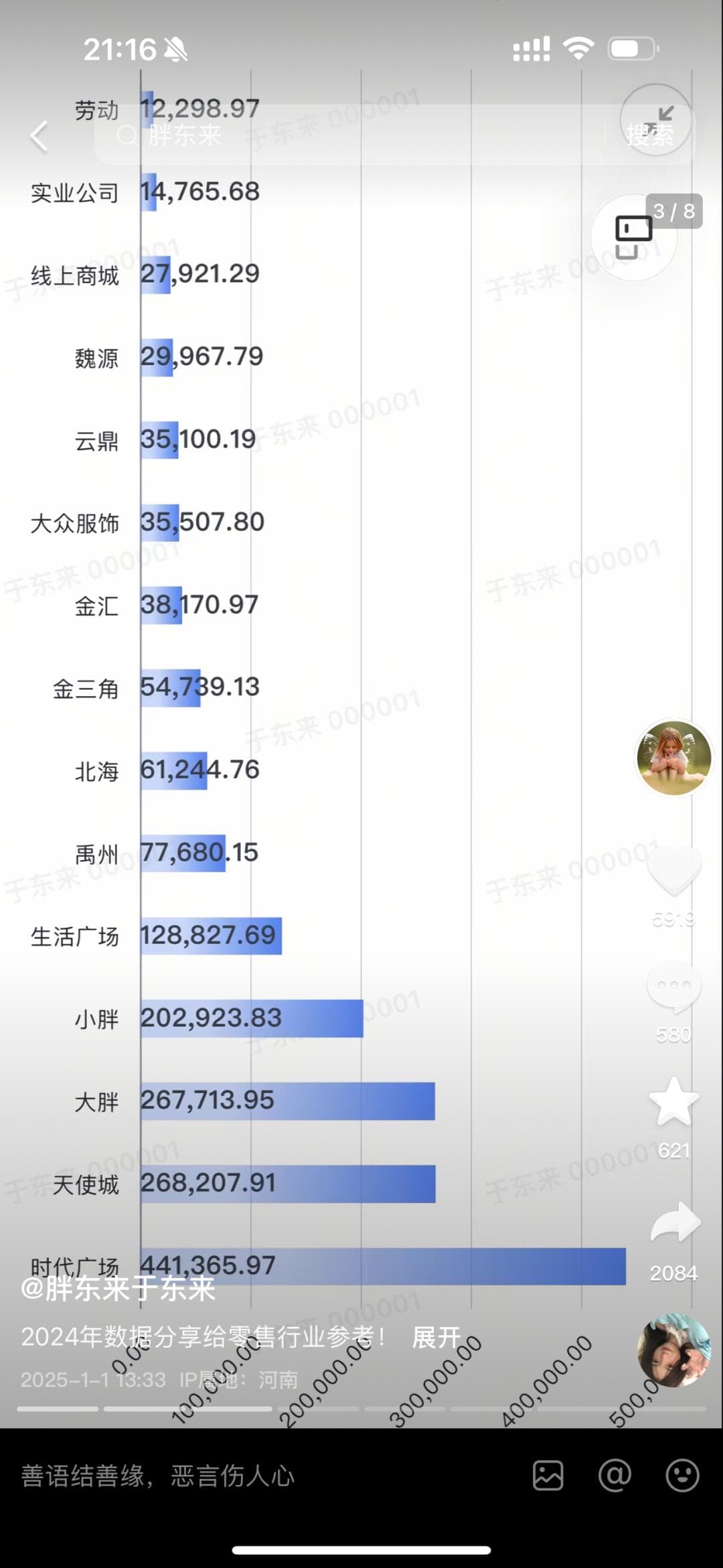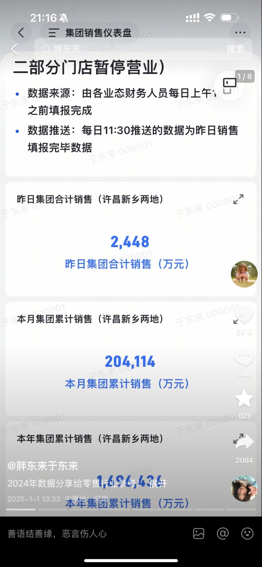 令人猝不及防,1月1日,胖东来创始人于东来把公司全年的经营数据,直接贴在了自己的抖音上。
