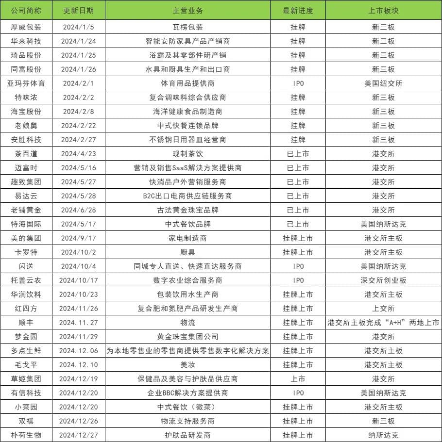 2024年上市和挂牌的消费企业