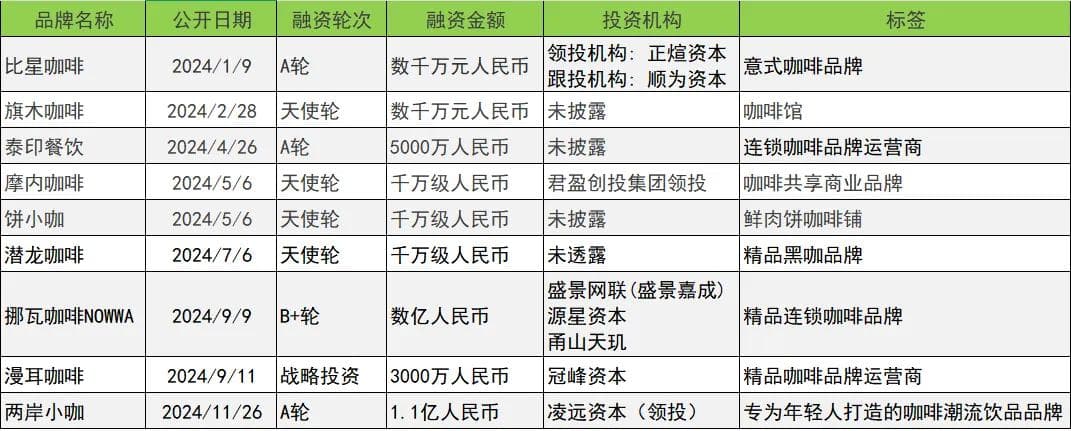 一是,咖啡赛道热度下降,但部分品牌表现亮眼,如两岸小咖在A轮就获得1.1亿元的投资。个别有特色的咖啡品牌也受到关注,如将非遗肉饼与现制咖啡进行结合的“饼小咖”、国内首个卡通IP咖啡品牌摩内咖啡都在天使轮就获得千万级的投资。