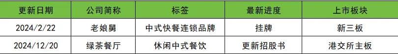 老娘舅经过一路波折,终于成功挂牌新三板上市。绿茶餐厅今年再闯港交所,更新招股书,从2021年初递交招股书到现在已经4年时间,期间多次更新招股书,但迟迟未能上市。