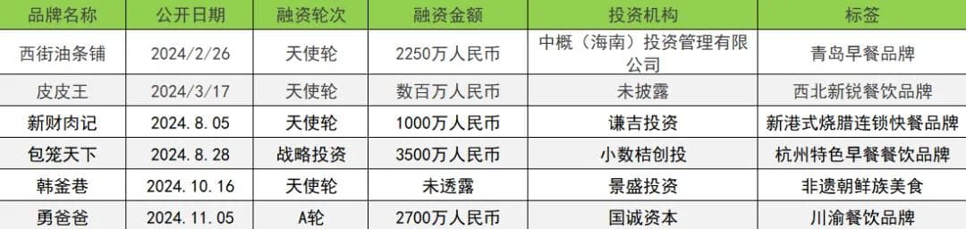 四是,地域性餐饮品牌受到关注。今年获得投融资的西街油条铺、皮皮王、新财肉记、韩釜巷、包笼天下等,分别是青岛早餐、西北餐饮、新港式烧腊、非遗朝 鲜族美食、杭州特色早餐等。徽菜品牌小菜园,在港交所主板挂牌上市。