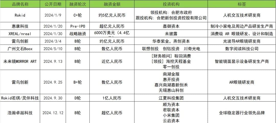 不考虑IPO轮次的话,2024年消费级智能硬件领域共有超过40起投融资事件,其中亿元级(包括约亿元和近亿元)的投融资9起,基本都在B轮以后的轮次。