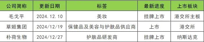 此外,草姬集团和朴荷生物也赶在2024年末分别登陆港交所和纳斯达克。
