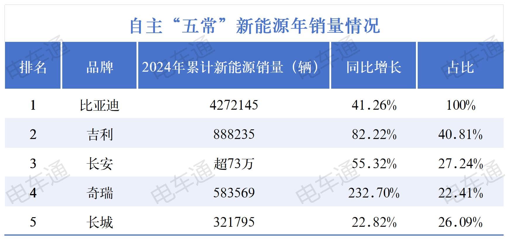自主五常2024年销量公布:比亚迪赢麻了,得新能源者得天下?