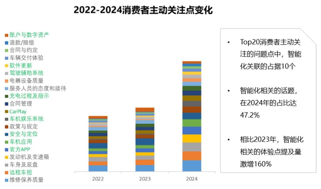 根据MaxInsight卓思公布的数据,在消费者主动提及的20个核心问题中,智能化相关的内容就占据了10个,其中包含远程车控、APP、车机应用、充电过程、驾驶辅助系统、软件更新等方面。