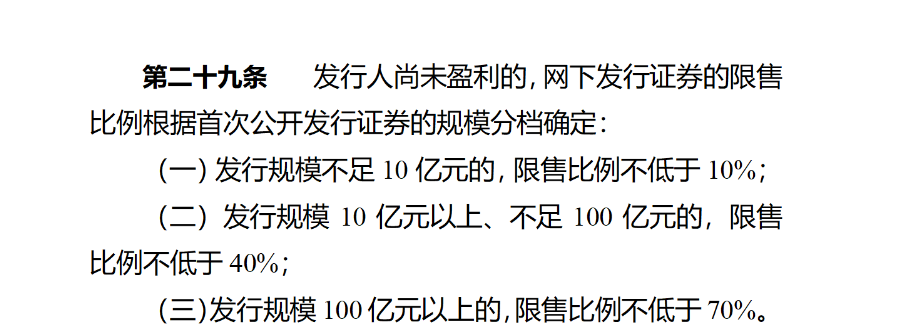 据证券时报记者了解,本次《首发承销细则》修订主要在四大方面:一是明确未盈利企业可以采用约定限售方式,对网下发行证券设定不同档位的限售比例或限售期,并按照不同发行规模分档明确网下整体限售的最低比例。