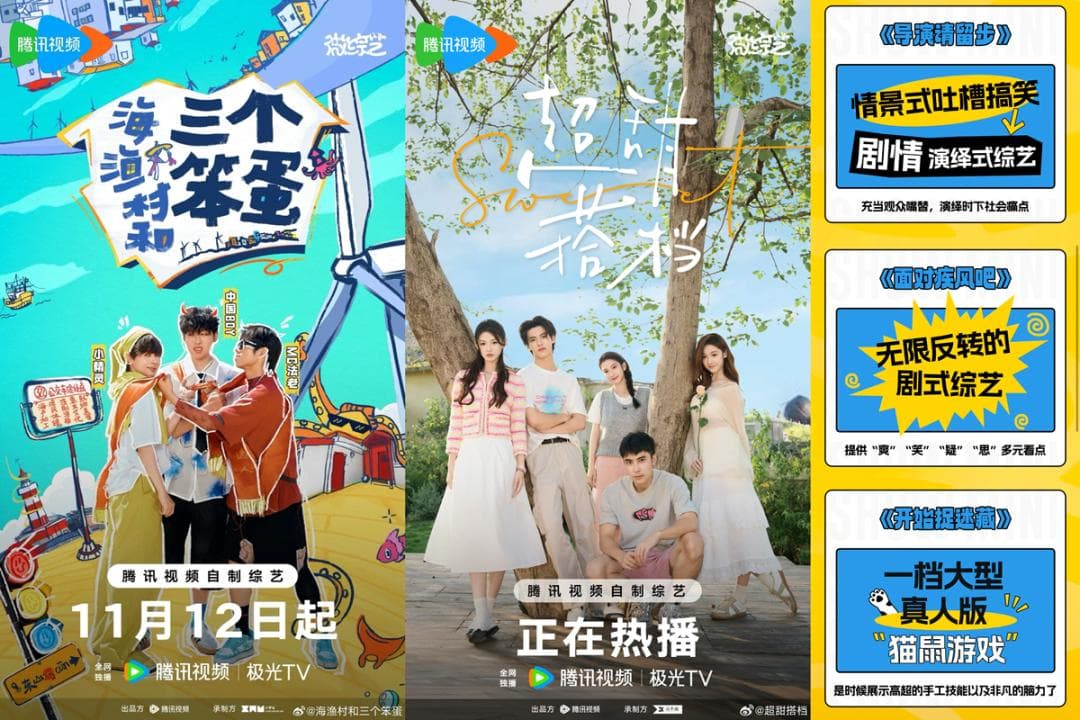 其它几档微综也更具差异化,《超甜搭档》揉合了演综+恋综+短剧的长短生态,节目发动网友共创、最终将选出一对CP参演定制短剧;《导演请留步》主打情景式吐槽,鹅厂此番携手了此前B站《片场日记》制作方「王尼玛团队」共探新赛道;2025年腾讯视频还将陆续上线“无限反转的剧式综艺”《面对疾风吧》、“一档大型真人版猫鼠游戏”《开始捉迷藏》,他们将在排播上共同构成腾讯视频中午12点的微综节目带,一整个满足了平台用户午间“下饭”的多元观综需求。