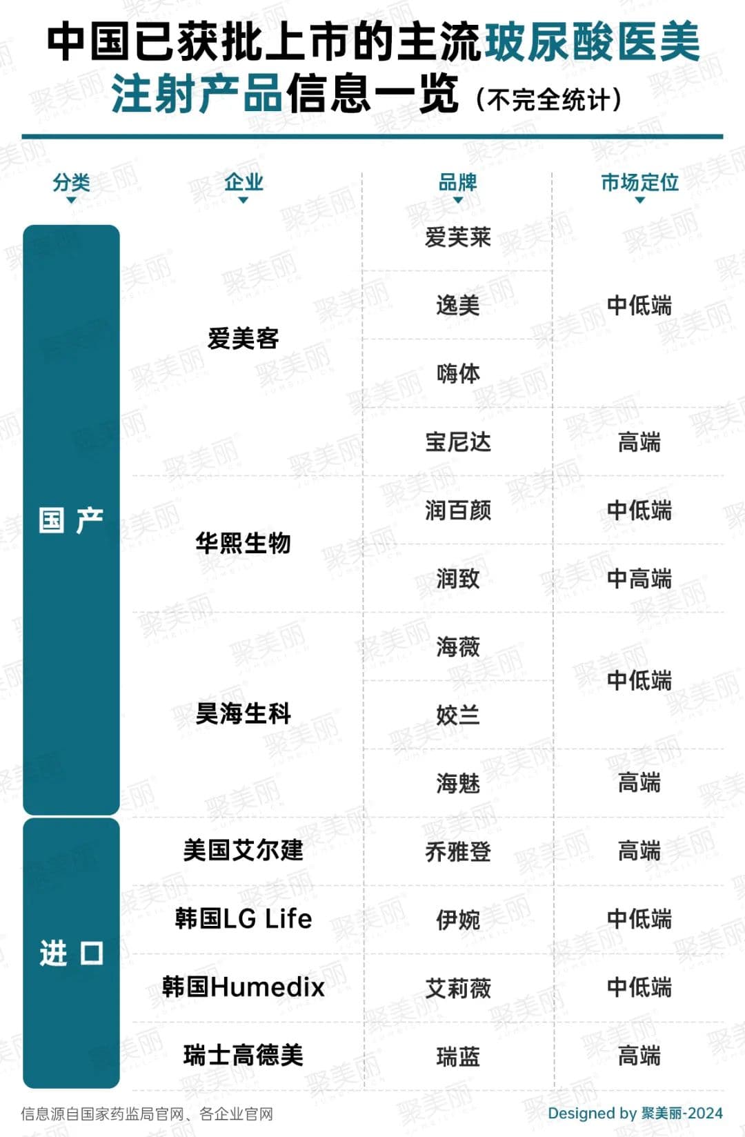1、国产玻尿酸多为中低端玻尿酸。这从上图便可明显看出,国内高端玻尿酸市场还存有一定市场空间。