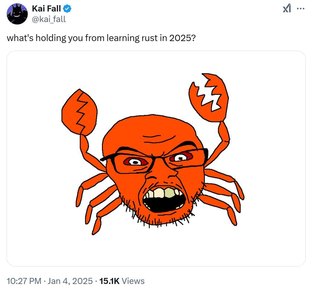 虽然 Rust 很强大且在安全性方面独树一帜,但它的学习成本也相对比较高。在一个关于「哪些原因阻止你在 2025 年学习 Rust」的调查中,有人抛出了一个有力的观点:他最常用的 C/C++ 库是同类中最好的,背后有数十年的开发经验。对于 Rust,他要么费尽心力地继续使用它,要么使用一些随机、不知名、没有血统的包。也有人认为,Rust 语法看起来很丑陋。