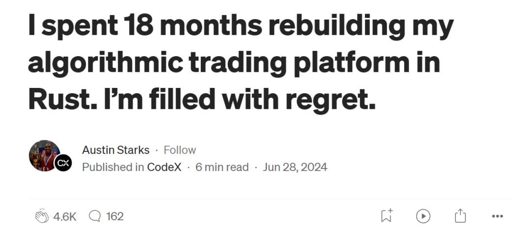 https://medium.com/codex/i-spent-18-months-rebuilding-my-algorithmic-trading-in-rust-im-filled-with-regret-d300dcc147e0
