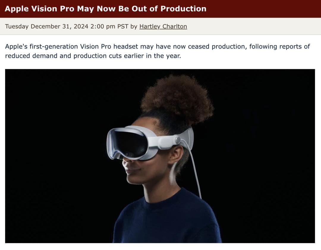 早在去年9月,就有小道消息传出,Vision Pro产量持续下滑,并计划在年底前彻底停产。