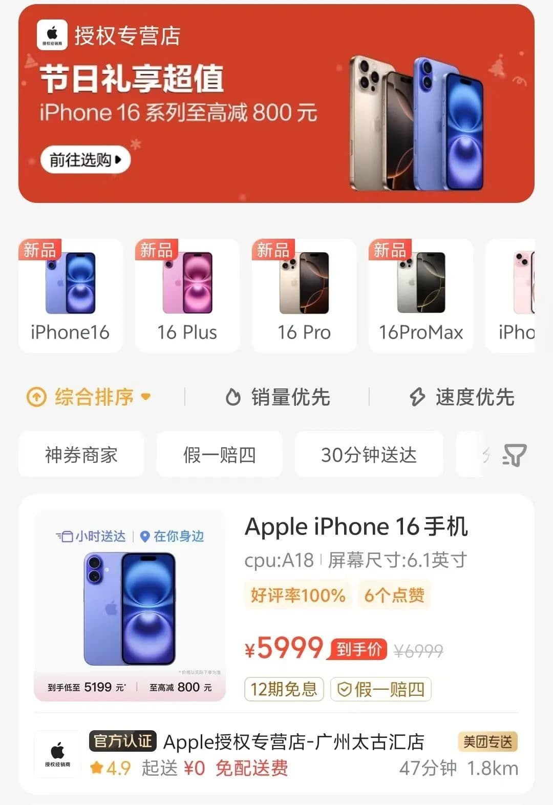 而且不仅是苹果官网和直营店,目前授权店,甚至美团外卖都有不同程度的折扣。