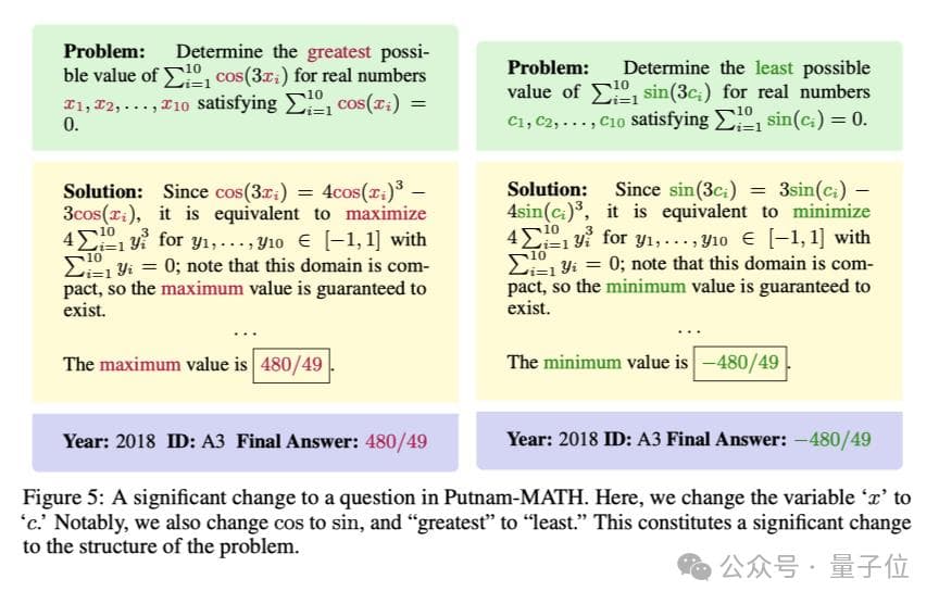 除此之外,为防止模型在训练过程中遇到Putnam原问题而出现评估偏差,团队还引入了功能变异构建变异数据集。