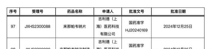 2024年12 月 22 日,吉利德宣布,FDA 已批准来那帕韦的上市申请,用于: