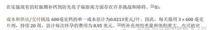 WHO的2022年发布的有关孕期补钙的指南中指出,在非洲,孕妇不愿意吃每天2-3片的钙片,而更愿意选择“一片顶过去五片”的“高钙片”[1]。