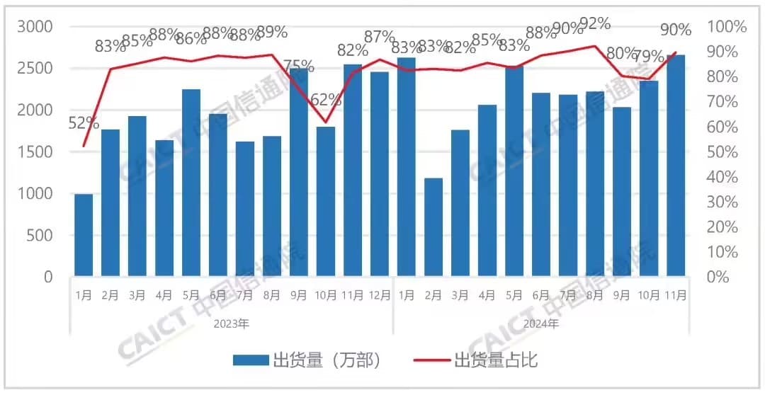 中国信通院公布的数据显示,2024年11月国内手机市场国外品牌出货量仅为304万台,同比暴跌47.4%,环比下滑幅度高达51%,并且已是连续第四个月同比销量下滑,2024年10月国外手机品牌国内销量跌幅也高达44.25%。由于其他国外品牌在中国市场卖不出多少手机,该数据基本可以等同于苹果手机在国内的销量变化。