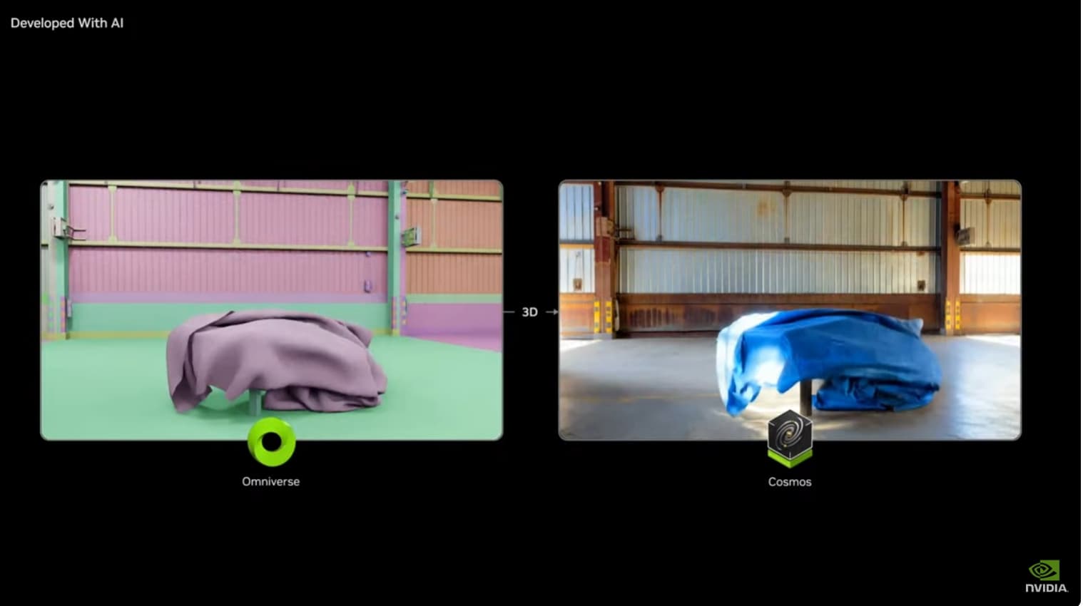 黄仁勋通过视频展示了Cosmos在工厂管理、自动驾驶等方面的应用: