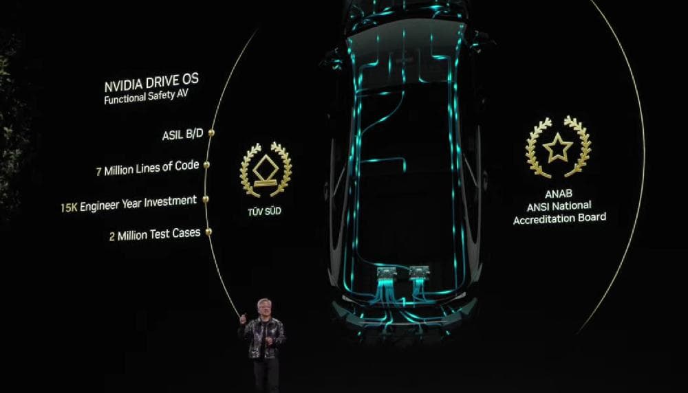 其自动驾驶汽车平台NVIDIA DRIVE AGX Hyperion已通过由业内两大权威机构TÜV SÜD和TÜV Rheinland的行业安全认证。