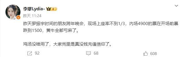 有观众看完演讲眼圈发红。她说因为价格问题,所以这是自己十年来第一次,也是最后一次坐在跨年演讲的现场。