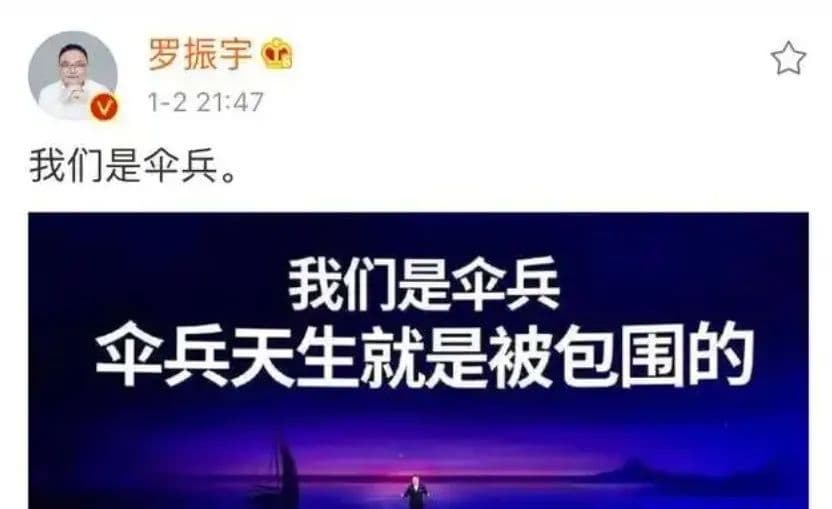 两天后,罗振宇发了一条微博,写着“我们是伞兵,伞兵天生就是被包围的”。不难看出,相较于自我反省,他似乎怨气更大一些。