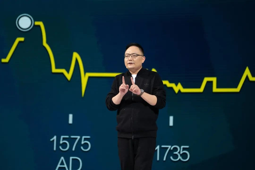 罗振宇已是台上的熟人,他依旧眯着眼睛,笑容和善;雷军一身白衣,仪态松弛,身后是宏伟的小米汽车工厂;张朝阳更是直接站在了教室里,实打实地为观众上了三个小时物理课。