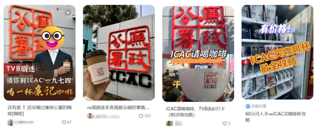 以前,廉政公署就是很多港剧迷的打卡点,现在煮起咖啡卖起周边,TVB老粉前赴后继捧杯留影。