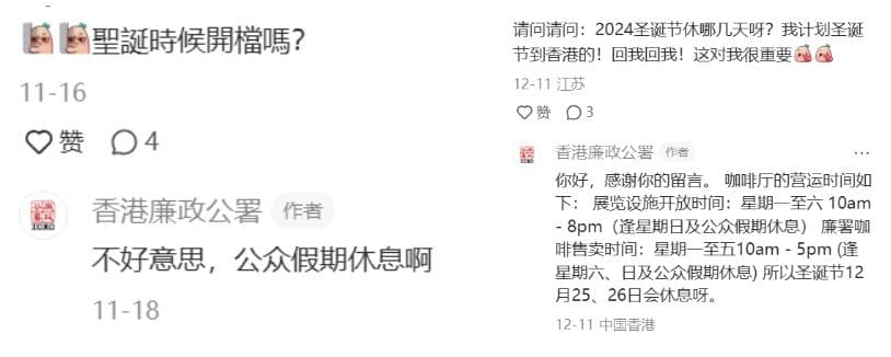 虽然现在不用贪污就能喝到廉记咖啡,门槛属实大大降低,但如果想去打卡,也得先看好时间。咖啡店周一至周五上午10点到下午5点营业,逢周末和公众假期休息。你最有空去打卡的时候,是人家放假的时候,这班是加不了一点。