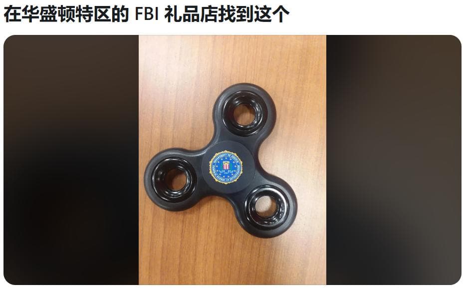 就像国外有网友在位于华盛顿的FBI礼品店找到的一个指尖陀螺。贴上了FBI的logo,这似乎就不再是一个简单的解压玩具,你免不了想象,这里弹开会不会有个摄像头,那里拧一下会不会能录音。
