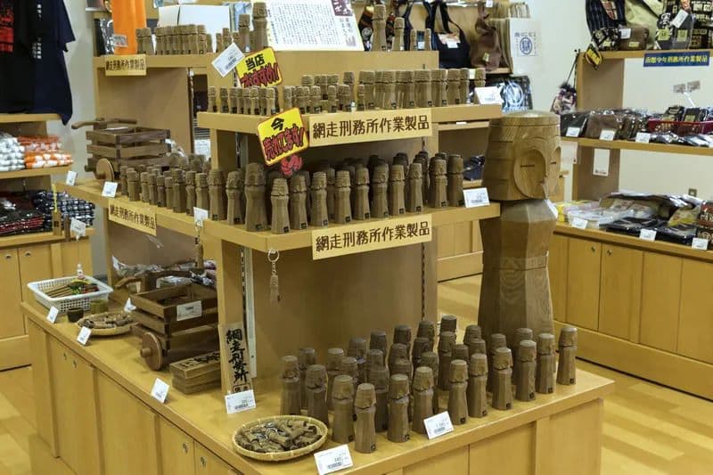网走监狱博物馆前身就是网走监狱,始建于1890年,后经移建、改建成为对外公开开放的博物馆。里面的直属礼品店,除了出售博物馆导览图以及本馆发行的研究资料等以外,还出售如今的监狱囚犯们制作的各种用品,有包有玩偶,有徽章有钥匙扣,日本人卖谷子一向可以的。