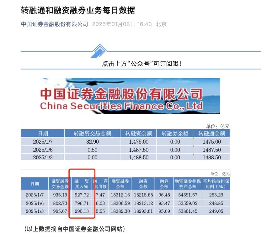 1月7日,融资买入额略有回升至927.72亿元,最新两融余额为1.83万亿,其中,融资余额为1.82万亿。