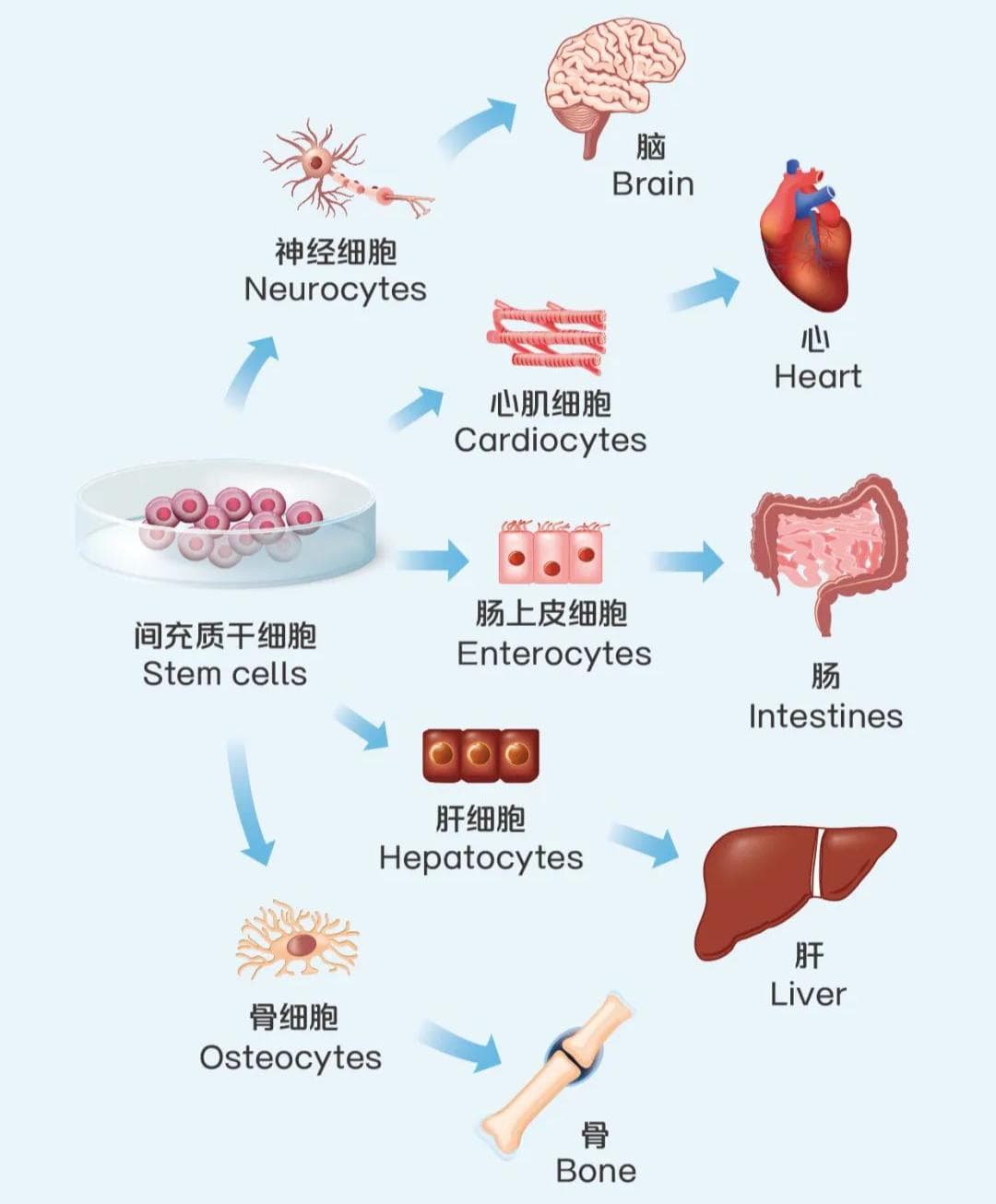 从技术角度对比中美两款干细胞产品不难发现,二者均聚焦于间充质干细胞,这类干细胞源自中胚层,广泛分布于骨髓、脐带、脐带血及脂肪等人体组织器官,具备多向分化的卓越潜能,且拥有自我复制、低免疫原性、高活性、抑炎性和不成瘤性等五大显著特性,在再生医学与细胞治疗的前沿研究中展现出巨大的应用潜力。