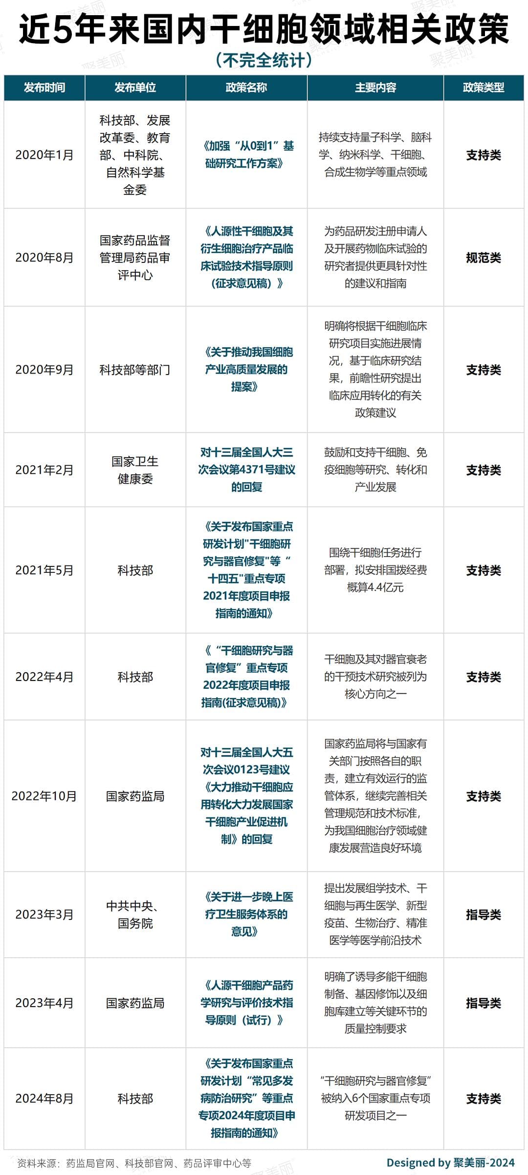 从政策方面来看,佰傲再生COO任敏华就对聚美丽表示,干细胞是我国的战略导向中非常重要的一个方向,国家近年来出台了很多政策,以极力推动干细胞的临床研究和相关产品的开发应用。