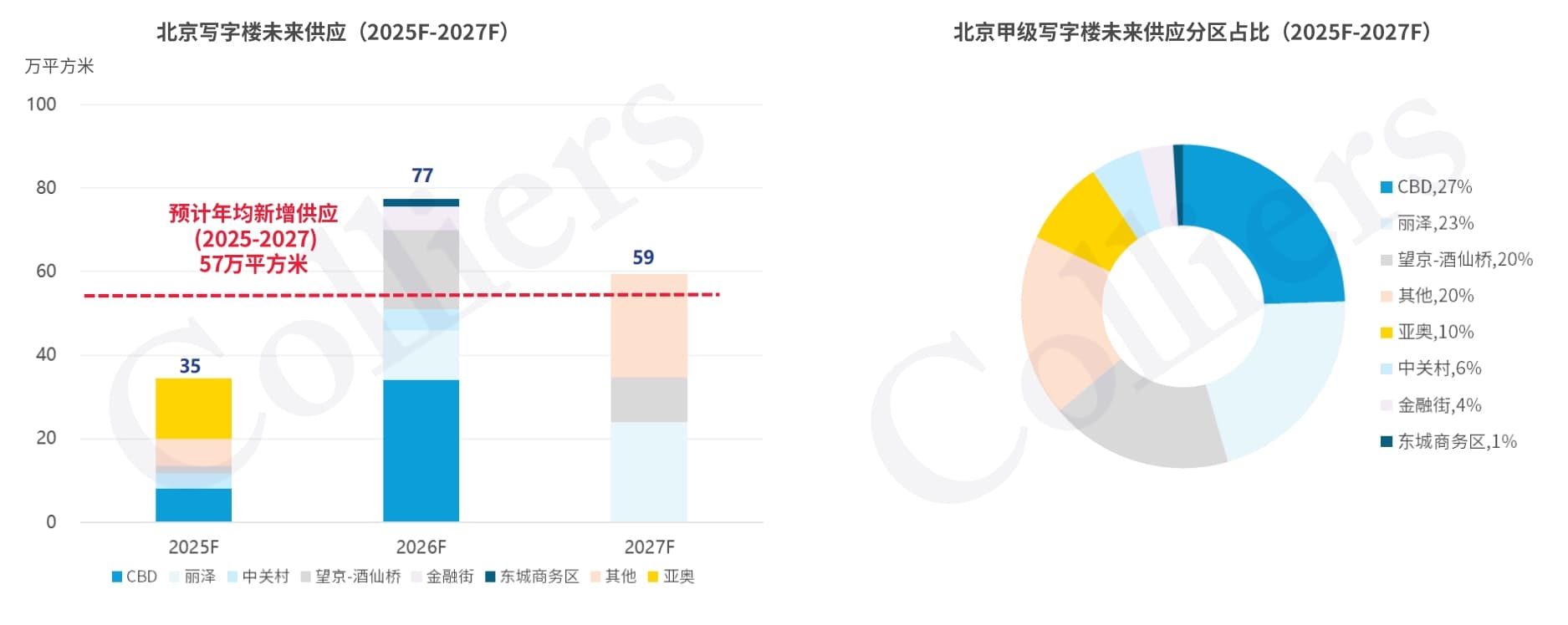北京写字楼市场存量占比,数据来源:高力国际