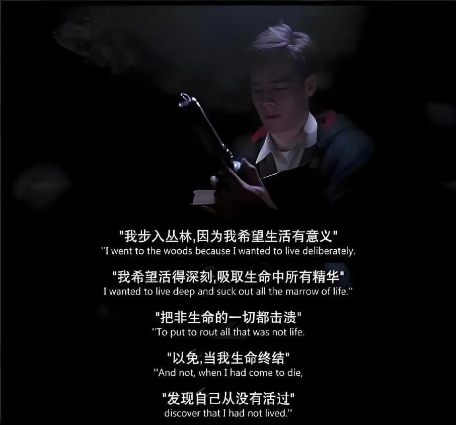 “我步入丛林,因为我希望生活有意义,我希望活得深刻,并汲取生命所有的精华,把非生命的一切都击溃,以免在我生命终结时,发现自己从没有活过。”