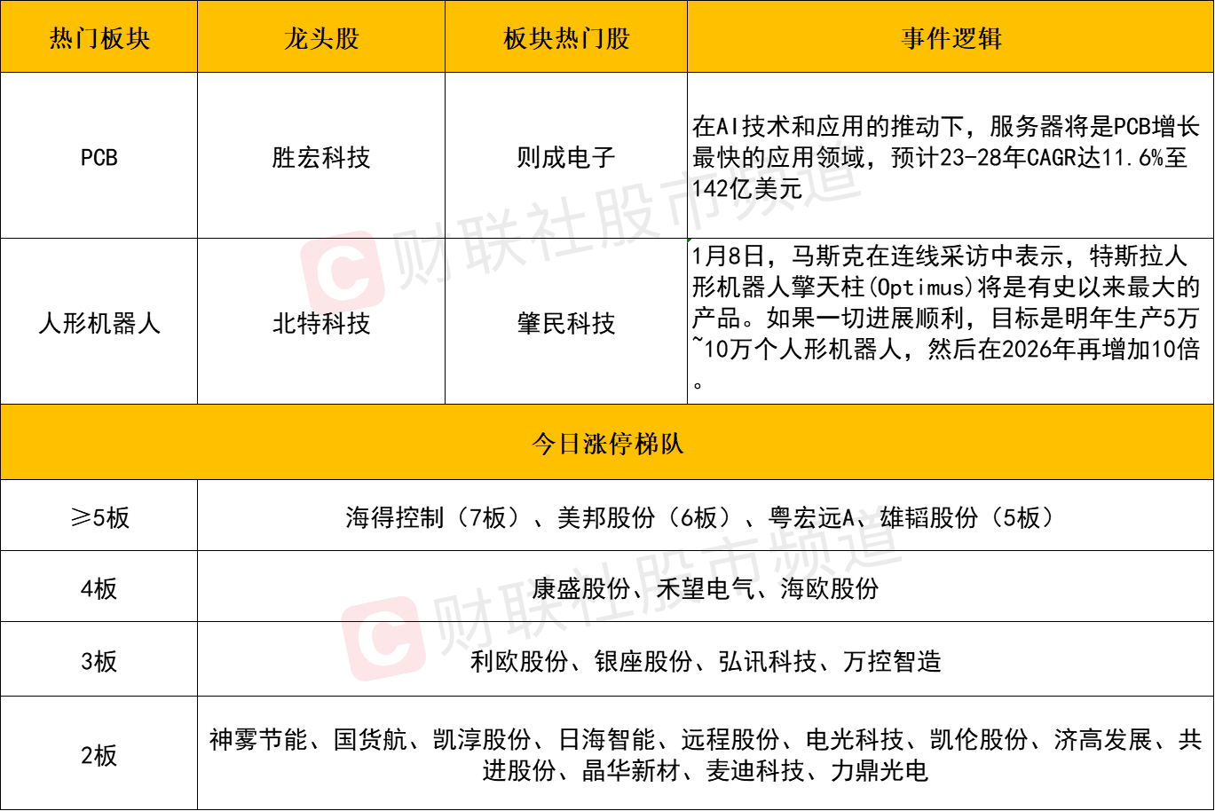 【每日收评】泛科技方向全线爆发,PCB与机器人概念联袂领涨,千亿市值龙头尾盘涨停