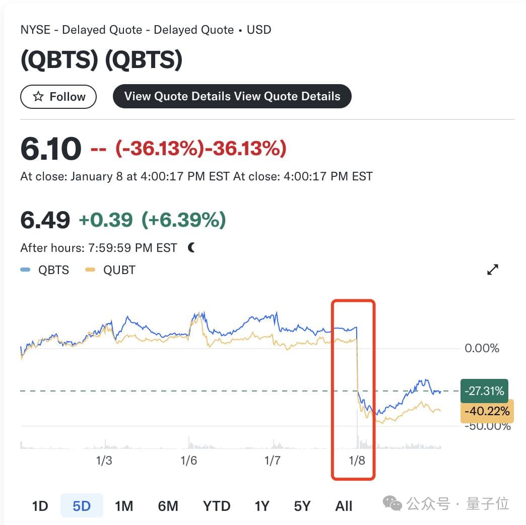IonQ下跌约45%,Rigetti股价上午下跌逾48%,D-Wave Quantum下跌约47%,Quantum Computing下跌了49%,D-Wave Quantum则下跌了约47%。