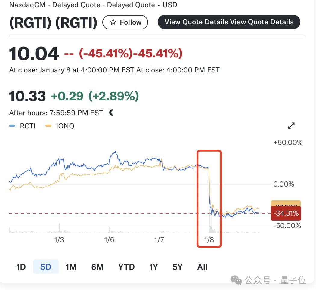 随后IonQ、Rigetti和其他量子计算股票暴跌了40%-50%——