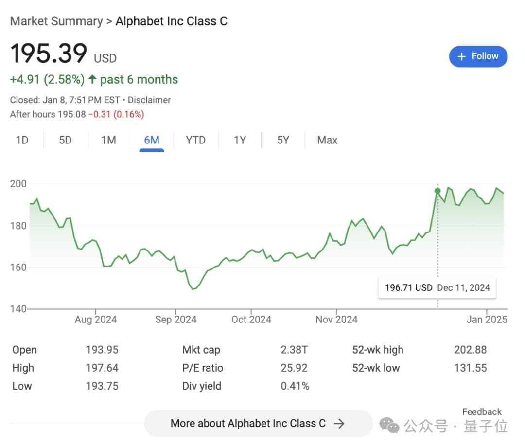 像科技巨头谷歌甚至也借此实现了全年(2024年)最高涨幅。