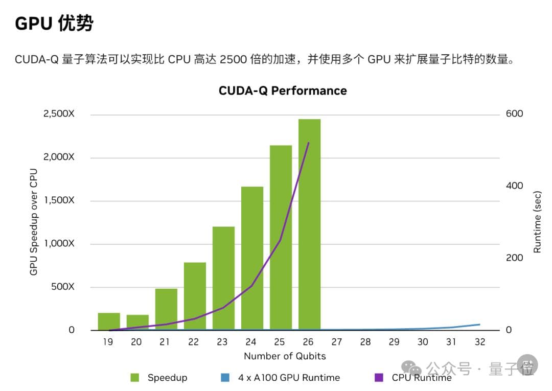 CUDA Quantum量子算法可实现比CPU高达2500倍加速,并使用多个GPU来扩展量子比特的数量。
