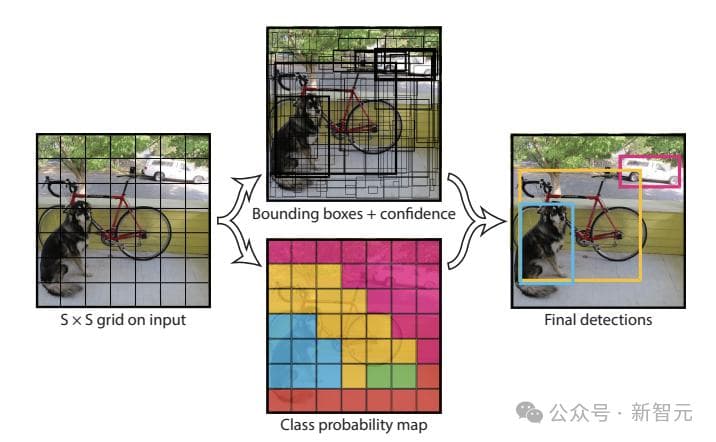 YOLO v1将目标检测视为一个回归问题,即预测空间上分离的边界框及其相关的类别概率,通过一个神经网络即可直接从整张图像中预测边界框和类别概率,训练过程可以进行端到端优化。