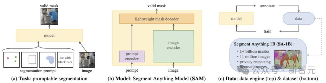 研究人员在SAM中构建了迄今为止最大的分割数据集,包含超过10亿个遮罩,1100万张授权图像;模型具备零样本学习能力,可以直接迁移到新的图像分布和任务,并且性能与之前的完全监督模型性能相当,甚至更优。