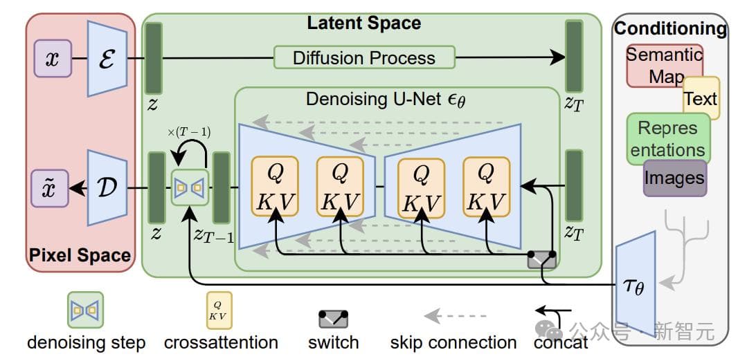 通过在模型架构中引入交叉注意力层,扩散模型就变成了通用条件输入生成器,可以处理文本或边界框,实现高分辨率合成。