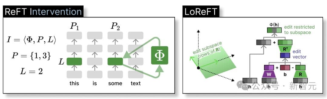 ReFT(表示微调)不关注某些层,而是关注特征:在冻结的基础模型上操作,学习对隐藏表示进行特定任务的干预,可以替代现有的参数高效微调(PEFT)方法,学习到的干预措施比LoRA的效率提升15到65倍。