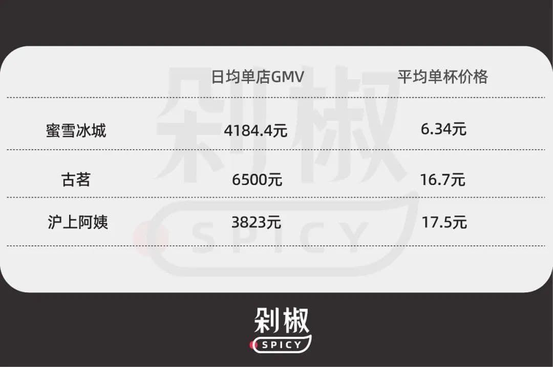 然而,对比现有数据会发现一个有趣现象:单杯价格最高的沪上阿姨,单店 GMV 反倒最低。