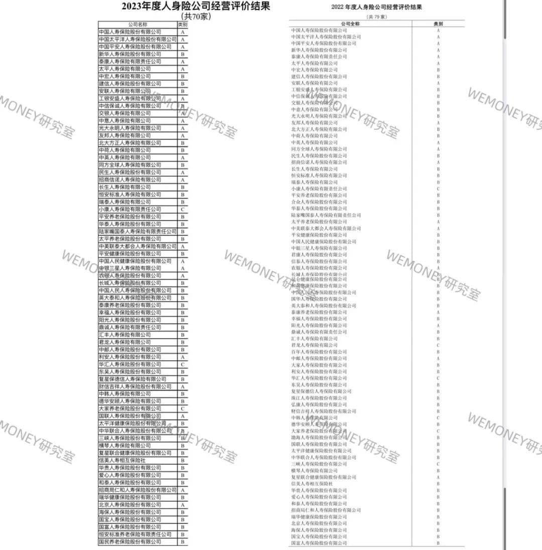 人身险公司中,A类22家,较2022年增加4家;B类45家,较2022年减少10家;C类3家,较上年减少3家。中国人寿、泰康人寿、太平人寿3家老牌劲旅连续9年稳坐A类,凭借深厚客户基础、多元产品体系与专业服务能力,在市场变革中保持领先。