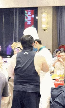 在喧闹的氛围下,忙不过来的服务员,将摔角手拉来给人上菜。正当大家疑惑摔角比赛何时开始时,摔角手竟然和厨师起了争执,两个“不会”吵架的广东人互相推搡,从台下一路打到台上。
